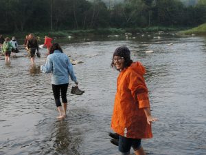 Bieszczady to jedno z ostatnich miejsc w Europie, gdzie można zobaczyć prawdziwie dziką przyrodę. Można tu natknąć się na tropy niedźwiedzi i wilków, żeremia bobrowe, usłyszeć rykowisko, znaleźć miejsce, gdzie jeszcze przed chwilą pasły się żubry. Uczestnicy wymiany FOOTPRINTS (13-21.09.14 Chmiel) z Polski, Hiszpanii i Finlandii mieli taką możliwość. Wspólnie przeczesywaliśmy lasy w poszukiwaniu dzikiej zwierzyny, wędrowaliśmy po połoninach, brnęliśmy boso po borowych mokradłach, przeprawialiśmy się w bród przez San, spędziliśmy noc w namiotach przy samej granicy ukraińskiej, śmiałkowie pomimo przymrozku spali nawet pod gołym niebem. Mieliśmy okazję porozmawiać z badaczami karpackiej fauny, wzięliśmy też udział w badaniach gryzoni na połoninach prowadzonych przez PAN. Nie zabrakło integracji międzykulturowej, poznawania historii i kultury regionu, działań artystycznych i świetnej zabawy.